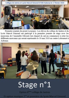 Première journée du projet Langages. Les élèves du collège de Jastres et du lycée Marcel Gimond ont participé à la première journée de stage avec les musiciens de l’ensemble Odyssée lors duquel ils ont pu commencer à créer les différents morceaux qui seront représentés le 19 mai 2020 au centre Lebournot à Aubenas.